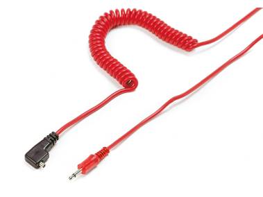 Professionelles Blitz-Anschlusskabel mit Zugentlastung über Spiralwicklung. Signalfarbe Rot, Länge: ca. 10 m.