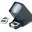Dia-Betrachter mit 3fach vergrößernder Doppellinse für gerahmte Dias 5 x 5 cm und ungeschnittene Filmstreifen in Schutztasche. Fallschacht mit Auffangschale. Netzbetrieb.