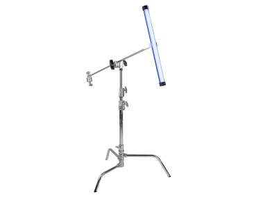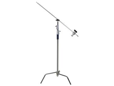 Professionelles Studiostativ mit schwenk- und verschiebbarem Ausleger sowie solider Dreibein-Basis.