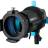 Einschubfach für mitgelieferte Gobo-Rahmen und als Zubehör erhältliche Irisblende. Vier verschiedene Metall-Gobos (Schattenmasken) im Lieferumfang, weitere Metall-Gobos als Zubehör erhältlich.