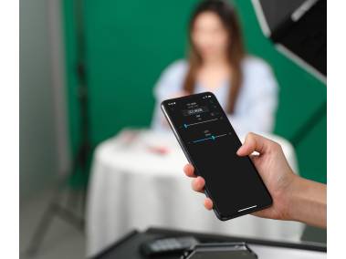 Einteiliger, kompakter Weißlicht-Scheinwerfer (2700 – 6500 Kelvin) für Foto- und Videoaufnahmen. Besonders geeignet für Porträt, Interview, Social Media-Aktivitäten, Vlogging, Videokonferenzen und Webinare sowie Stilllife-, Tabletop- und Makroaufnahmen. Zur gleichmäßigen, enorm hellen Ausleuchtung (mit Standardreflektor 38720 Lux in 1 m Entfernung bei 5600 Kelvin) mit sehr hoher Farbwiedergabequalität und für die Erzielung besonderer, individuell anpassbarer Beleuchtungseffekte. Dimmbar. Bedienung direkt an der Leuchte oder Fernsteuerung über Bluetooth oder Funk. Netzbetrieb.