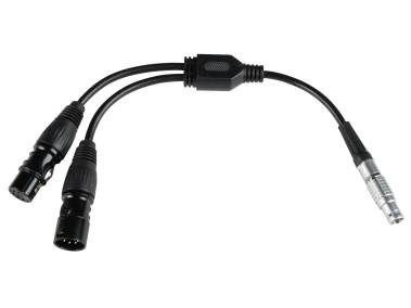 Mit 5-Pin-Aviation-Stecker (z. B. für PavoTube II 15X(R)/ 30X(R) / 60X(R)) und je einem 5-poligen Standard-XLR-Stecker male und female.