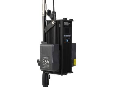 Stromversorgung: über separate Steuereinheit oder Akkubetrieb mit zwei V-Mount-Akkus 14,4 V oder 26 V (Akkus nicht im Lieferumfang, bei Akkubetrieb reduzierte Leistung).