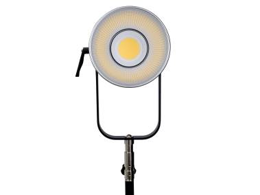 Professioneller, leistungsstarker LED-Tageslicht-Scheinwerfer (5600 Kelvin) für Sachaufnahmen, Portraits, Foto- und Videoaufnahmen. Zur gleichmäßigen, außerordentlich hellen Ausleuchtung (mit Standardreflektor ca. 124000 Lux in 1 m Entfernung) mit hoher Farbwiedergabequalität und für die Erzielung besonderer, individuell anpassbarer Beleuchtungseffekte. Dimmbar. Bedienung an der separaten Steuereinheit oder Fernsteuerung über Bluetooth, Funk oder DMX/RDM. Netzbetrieb oder Akkubetrieb (Akkus nicht im Lieferumfang). Bowens-Bajonettanschluss für lichtformendes Zubehör.