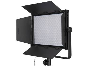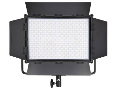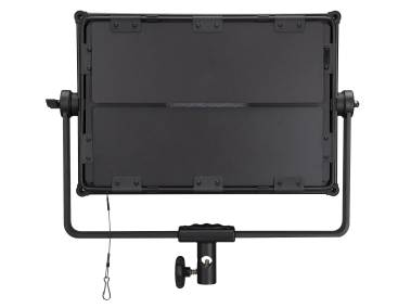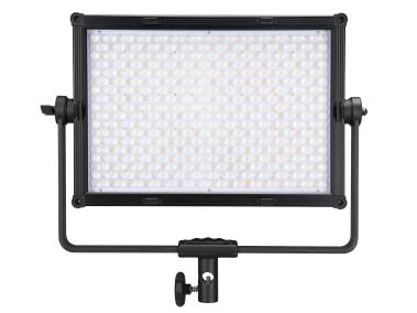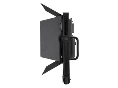 Professionelle, leistungsstarke LED-Flächenleuchte mit flachem Gehäuse, Lichtklappen und den Beleuchtungsarten blendfreies Weißlicht, gerichtetes Weißlicht und farbiges Licht (durch Auswahl aus dem Farbspektrum oder additive Farbmischung oder Auswahl vordefinierter Farbfilter/Gel-Filter). 10 Spezialeffekte, die alle individuell angepasst werden können. Komplette Einstellungen können gespeichert und bei Bedarf wieder abgerufen werden. Inklusive Netzteil.