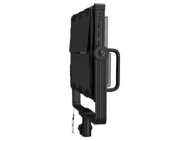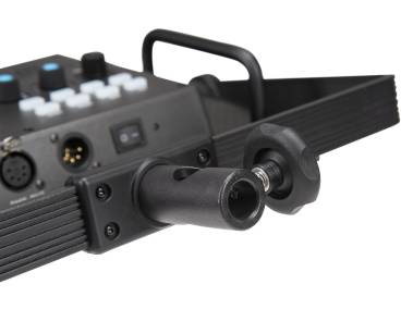 Leuchte schwenkbar auf Montagebügel aus Aluminium. Befestigung auf geeigneten Stativen/Halterungen mit 16 mm (5/8“)-Normzapfen.