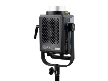 Zur gleichmäßigen, enorm hellen Ausleuchtung (mit mitgeliefertem Reflektor 106500 Lux in 1 m Entfernung bei 5600 Kelvin) mit sehr hoher Farbwiedergabequalität und für die Erzielung besonderer, individuell anpassbarer Beleuchtungseffekte. Dimmbar. Bedienung direkt am Scheinwerfer oder Fernsteuerung über Bluetooth, Funk oder DMX/RDM oder separate FC-Steuereinheit (optionales Zubehör). Bowens-Bajonettanschluss. Netz- oder Akkubetrieb über FC-Steuereinheit.