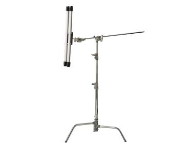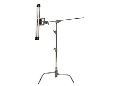 Befestigung mit Röhren-Befestigungsadapter (inkl.) auf Stativen und Halterungen mit 1/4"-Anschlussgewinde (Schwerpunkt der Leuchte ist am Gehäuse gekennzeichnet) oder mit diversen Leuchtenhalterungen (Zubehör). Die Leuchte kann auch mit einem Bodenstativ (Zubehör) senkrecht aufgestellt oder mit einem Drahtseil (inkl.) aufgehängt bzw. mit einer weiteren Leuchte verbunden werden.