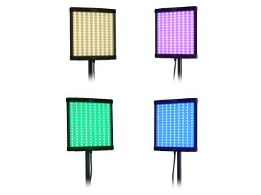 Professionelle, nur 1,86 cm flache Full-Color-Flächenleuchte mit weißem Licht (variable Farbtemperatur 2700 – 7500 Kelvin) und farbigem Licht sowie robustem, aber trotzdem leichtem Metallgehäuse 30 x 30 cm (1' x 1'). Selbst mit montierter Softbox flacher als Leuchtmatten mit Halterahmen. Deshalb auch besonders geeignet für Aufnahmesituationen mit wenig Platz (kleine Studios, unter der Decke) und bei mobilen Einsätzen wie Hochzeiten, Events und Meetings.