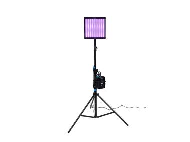 Speziell entwickelte optische Linsen (60°) vor jeder LED zur gleichmäßigen, sehr hellen Ausleuchtung (7074 Lux in 1 m Entfernung bei 5600 Kelvin) mit sehr hoher Farbwiedergabequalität. Individuell anpassbare Spezialeffekte. Dimmbar. Bedienung über separate Steuereinheit oder Fernsteuerung über Bluetooth, Funk, DMX/RDM oder LumenRadio CRMX. Netz- oder Akkubetrieb. Verschiedene Befestigungsmöglichkeiten.
