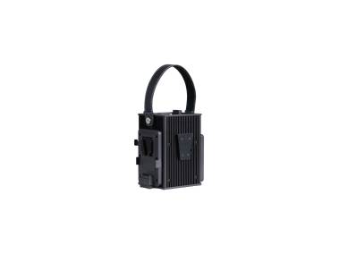 Akkubetrieb für den mobilen Einsatz mit einem V-Mount-Akku 14,4 – 14,8 V oder 26 V oder zwei NP-F-Akkus (Akkus optionales Zubehör). Befestigung an der Steuereinheit. Betriebsdauer bei 100 % Helligkeit