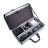Gepolsterter Transportkoffer mit herausnehmbaren Trennelementen, Fach für die Leuchte innen im Deckel, Tragegriff sowie Umhängegurt mit Schulterauflage und Rutschsicherung.
