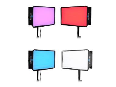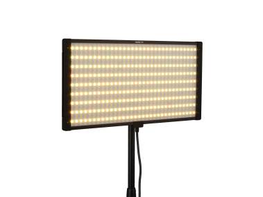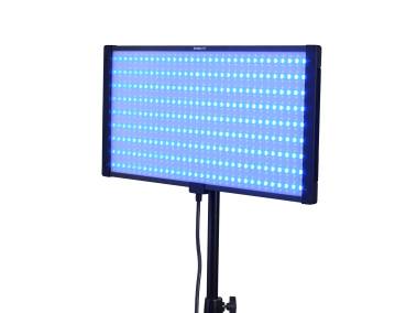 Professionelle, nur 1,86 cm flache Full-Color-Flächenleuchte mit weißem Licht (variable Farbtemperatur 2700 – 7500 Kelvin) und farbigem Licht sowie robustem, aber trotzdem leichtem Metallgehäuse 60 x 30 cm (2' x 1'). Selbst mit montierter Softbox flacher als Leuchtmatten mit Halterahmen. Deshalb auch besonders geeignet für Aufnahmesituationen mit wenig Platz (kleine Studios, unter der Decke) und bei mobilen Einsätzen wie Hochzeiten, Events und Meetings.
