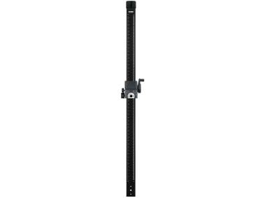 Breite und extrem vibrationsarme Führungssäule aus Aluminium-Profilrohr, mattschwarz eloxiert, mit cm- und inch-Skalen. Mit Haltearm und Befestigungsvorrichtung für Kameraarme und Gerätekopfunterteil 4568. Höhenverstellung mit Handkurbel.