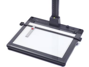 Andruckplatte aus hochwertigem Kristallglas zum Anpressen welliger Vorlagen. Wird über ein Scharnier mit der Leuchtgrundplatte verbunden und kann angehoben oder komplett nach oben geklappt werden. Mit verstellbaren Anschlagleisten.![]()