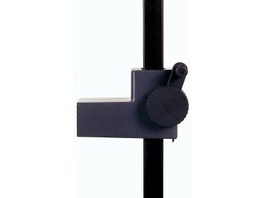 Reflexfreies, mattgrau beschichtetes Grundbrett mit aufgedrucktem Feinraster, cm- und inch-Skala. Höhenverstellbare Füße. Wasserwaage im Sockel. Besonders breite und extrem vibrationsarme Führungssäule aus mattschwarz eloxiertem Aluminium-Profilrohr mit cm- und inch-Skala. Höhenverstellung durch kunststoffgelagerten Friktionstrieb mit Handkurbel. Gewichtsausgleich über mitlaufende Rollfeder. Säule um 180° gedreht montierbar.