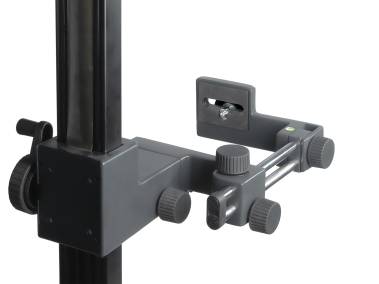 Kameraträger schwenkbar ± 90° und in jeder Stellung arretierbar. Mit Wasserwaage zur Feinjustierung.