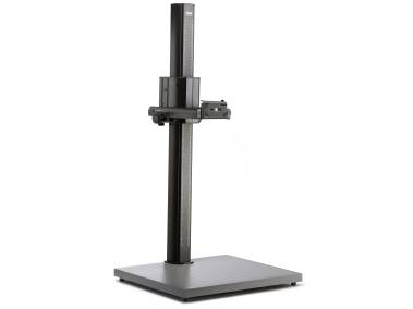 Führungssäule aus Aluminium-Mehrkammerspezialprofil, mattschwarz eloxiert mit aufgedruckten cm- und inch-Skalen. Kameraträger aus Aluminium-Profil, horizontal über Parallelführung mit Zahnstange um ca. 16 cm verstellbar, Rechts-/Links-Bedienung, mit zwei Blockierschrauben zur Fixierung der eingestellten Position. Kamera-Montageplatte um ± 90° schwenkbar.Anschlussgewinde horizontal verschiebbar.Höhenverstellung mit Handkurbel (5602) oder motorisch (5603). Großes, reflexfreies, mattgrau beschichtetes Grundbrett mit aufgedrucktem Feinraster, cm- und inch-Skala. Höhenverstellbare Füße. Wasserwaage am Sockel.