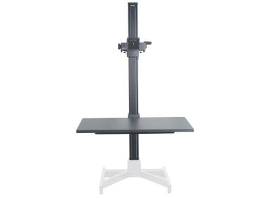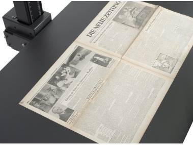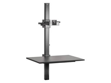 Kameraträger und Arbeitsplatte mit getrennt steuerbarer motorischer Höhenverstellung. Zwei Verstellgeschwindigkeiten, belastungsunabhängig und konstant. Selbsthemmender Spindeltrieb: jede Höhenposition wird exakt gehalten. Automatische Endabschaltung über Magnetsensor. Kollisionsschutz. Kabelfernbedienung.