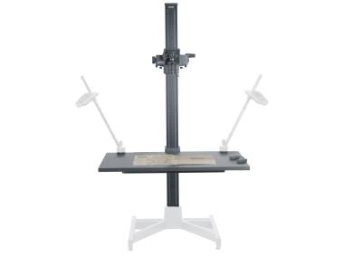 Extrem stabile Führungssäule aus Mehrkammer-Spezialprofil, mattschwarz eloxiert, mit aufgedruckten cm- und inch-Skalen und zwei motorisch verstellbaren Ebenen.