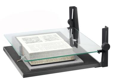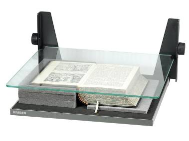 Haltevorrichtung mit Glas-Andruckplatte zum exakten Positionieren beim Reproduzieren aus Büchern, Zeitschriften und Zeitungen.