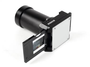 Inkl. Wechselschieber für zwei gerahmte Kleinbilddias, bis maximal 3 mm Rahmenstärke.