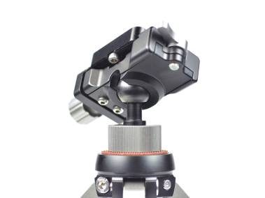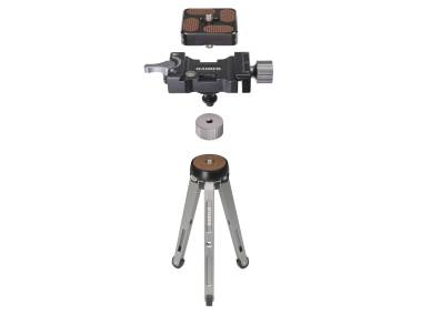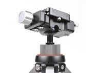 Schnellwechselsystem mit Schwalbenschwanzklemmung und Schraubfixierung (Arca-Swiss kompatibel). Schnellwechselplatte mit rutschfester Auflage, 1/4"-Bügelschraube mit Münzschlitz und abnehmbarer Durchrutschsicherung.