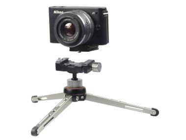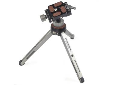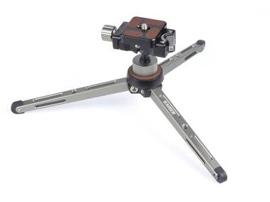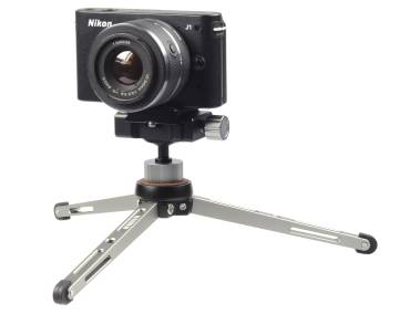 Robustes Dreibein-Mini-Stativ aus hochwertiger Aluminiumlegierung mit eloxierter Oberfläche. Hohe Tragkraft: belastbar bis zu 6 kg.