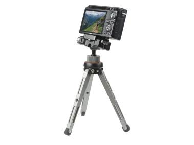 Mini-Stativ „solid 3+“ (7223) mit Kugelneiger „2fix“ (7201).