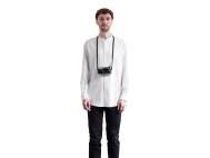 Handgewebter Kameragurt aus reiner Seide in spezieller flacher Webtechnik, komplett durchgewebt, d.h. ohne Verwendung anderer Materialien im Inneren. Elastisch, hochstabil und atmungsaktiv. Hoher Tragekomfort. Lässt sich auch einfach ums Handgelenk wickeln und als Handschlaufe verwenden. Gurtenden mit Schutzlaschen aus italienischem Leder. Ringbefestigung aus Edelstahl.