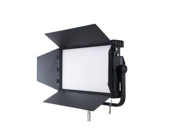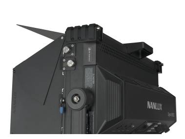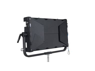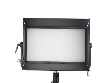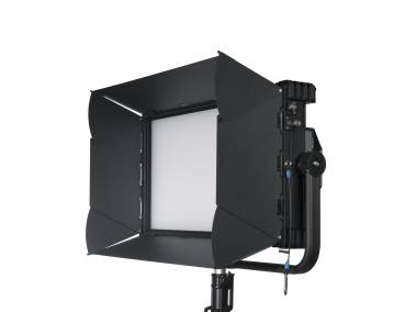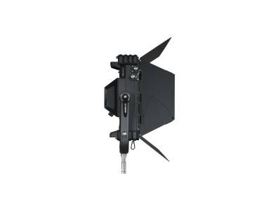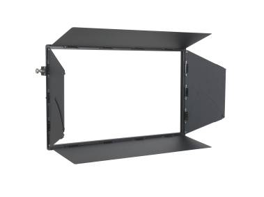 Metallrahmen mit vier Lichtklappen für gezielte Lichtführung und zur Verminderung von Streulicht. Abstrahlwinkel stufenlos verstellbar.