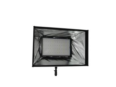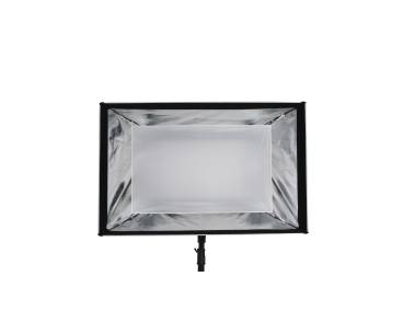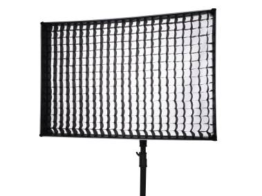 Für die Erzielung von gerichtetem Licht und zur Verminderung von Streulicht kann eine im Lieferumfang enthaltene Stoffwabe befestigt werden.