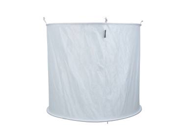 Einfacher Aufbau durch Auffalt-Automatik. Dank des flexiblen Rahmens sehr kompakt zusammenlegbar. Befestigung an der Leuchte mit vier Karabinerhaken.