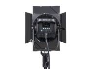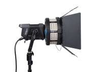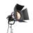Dreh- und abnehmbarer Vorsatz mit vier Lichtklappen für gezielte Lichtführung. Zwei Lichtklappen mit ausschwenkbaren Zusatzflächen. Bei Veränderung des Lichtaustrittwinkels dreht sich der Lichtklappenvorsatz nicht mit und die Stellung der Lichtklappen bleibt erhalten.