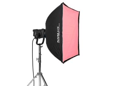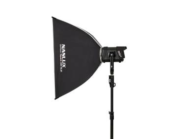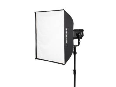 Quadratische Softbox zur Vergrößerung der Abstrahlfläche und Erzielung einer weichen, schattenfreien Ausleuchtung.