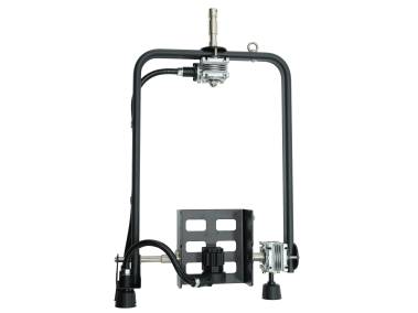 Aufhängevorrichtung für Fresnel-Vorsatz FL-35 mit montiertem Evoke Studio-Scheinwerfer (z. B. Evoke 900C, Evoke 1200, Evoke 1200B).