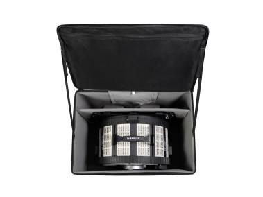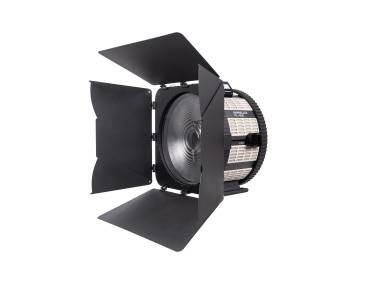 Für Studio-Scheinwerfer mit NLM-Bajonettanschluss mit elektronischen Kontakten, z. B. für Evoke 5000B und 2400B. Mit Fresnel-Linse zur Bündelung des Lichts und zur Erzielung einer höheren Beleuchtungsstärke (z. B. an Evoke 5000B: 79500 Lux in 5 m Entfernung bei 5600 Kelvin / 16°). Lichtaustrittswinkel stufenlos von 16° bis 50° verstellbar. Mit Tragegriff und Standfüßen.