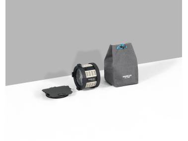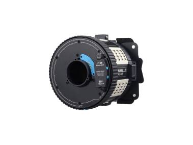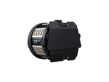 Motorisierter Fresnel-Vorsatz mit FE-Bajonett (wie FMM-Bajonett, aber zusätzlich mit elektronischen Kontakten), für Scheinwerfer mit FE-Bajonettanschluss, z. B. für NANLUX Evoke 150C. Ermöglicht sowohl motorische als auch manuelle Einstellung des Abstrahlwinkels.