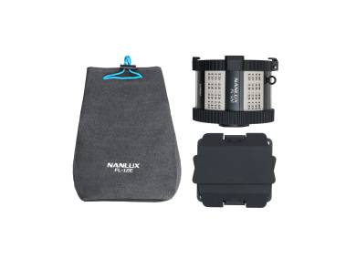 Lieferumfang: Fresnel-Vorsatz FL-12E, Lichtklappen-Vorsatz, Aufbewahrungstasche.