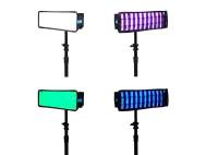 Farbiges Licht, beispielsweise zum Setzen von Farbakzenten bei Porträts, Produktfotos und Filmszenen oder zur Schaffung von Lichtstimmungen durch einen farbig angestrahlten Hintergrund. Kann auf drei verschiedene Arten eingestellt werden: