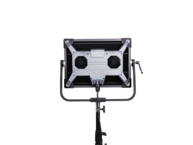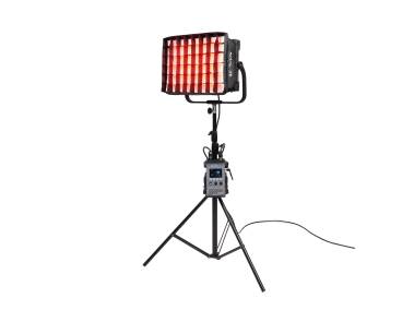 Mit spezieller Lichtmischtechnologie und optischer Linse vor jeder LED zur gleichmäßigen, sehr hellen Ausleuchtung (28630 Lux in 1 m Entfernung bei 5600 Kelvin) mit sehr hoher Farbwiedergabequalität. Bietet die Beleuchtungsarten weißes Licht mit variabler Farbtemperatur 2700 - 12000 Kelvin und Grün-/Magenta-Korrektur sowie farbiges Licht durch Auswahl aus dem Farbspektrum oder durch additive Farbmischung oder Auswahl von XY-Koordinaten aus der CIE-Normfarbtafel oder durch Verwendung vordefinierter Farbfilter/Gel-Filter. Besondere, individuell anpassbare Spezialeffekte. Dimmbar. Komplette Einstellungen können gespeichert und bei Bedarf wieder abgerufen werden. Bedienung über separate Steuereinheit mit großem Farbdisplay oder Fernsteuerung über Bluetooth, Funk, DMX/RDM oder LumenRadio CRMX. Schutzklasse IP55. Montagebügel. Abschaltbares, mehrstufiges Kühlgebläse. Netzbetrieb oder Akkubetrieb.