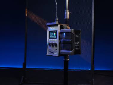 Maximale Helligkeit 45 % mit einem V-Mount-Akku 14,4 – 14,8 V, 75 % mit einem V-Mount-Akku 26 - 28 V oder 100 % mit zwei V-Mount-Akkus 14,4 – 14,8 V oder zwei V-Mount-Akkus 26 – 28 V oder einem V-Mount-Akku 14,4 – 14,8 V zusammen mit einem V-Mount-Akkus 26 - 28 V.