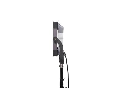 Speziell geformter Montagebügel, zum stufenlosen Schwenken der Leuchte. Einhebel-Verriegelung. Aluminium. Befestigung auf geeigneten Stativen und an Halterungen mit 16 mm (5/8“)-Normzapfen (Baby Pin) oder 28 mm-Normhülse (Junior Pin).