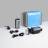 Robustes Kunststoffgehäuse, schwarz/silbern mit blauen Zierelementen und Schwenk-/Tragegriff.
