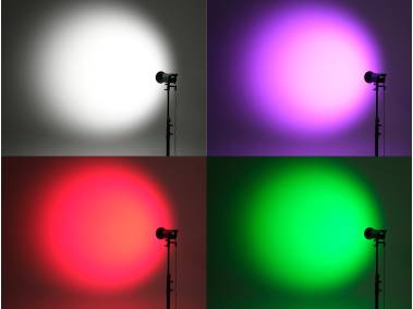 Professioneller, stylischer Full-Color Reportage- und Studio-Scheinwerfer mit weißem Licht (variable Farbtemperatur 2700 – 7500 Kelvin), farbigem Licht (aus Farbspektrum oder durch additive Farbmischung) und besonderen, individuell anpassbaren Spezialeffekten. Kompakt, leicht und preisgünstig.