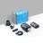 Robustes Kunststoffgehäuse, schwarz/silbern mit blauen Zierelementen und Schwenk-/Tragegriff.