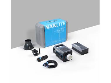 Enorm hellen Ausleuchtung (mit Standardreflektor 119000 Lux in 1 m Entfernung bei 5600 Kelvin) mit hoher Farbwiedergabequalität. Dimmbar. Bedienung direkt am Scheinwerfer oder Fernsteuerung über NANLINK APP oder DMX/RDM. Bowens-Bajonettanschluss, Montagebügel, abschaltbares, mehrstufiges Kühlgebläse. Netzbetrieb mit separatem Netzteil.