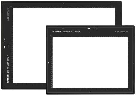 The dimmable prolite LED is available in two sizes with illuminated areas of 37 x 25 cm and 50 x 37 cm respectively. The acrylic glass screens have been specially optimized for backlighting with LEDs and therefore provide a very homogeneous light distribution together with a high luminous efficiency. The maximum luminance of 9400 or 10000 cd/m² reaches similarly high values as with the Kaiser Scan light boxes.