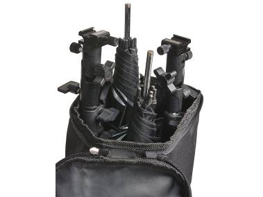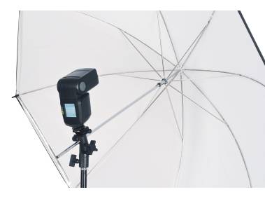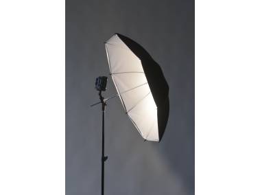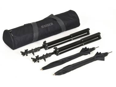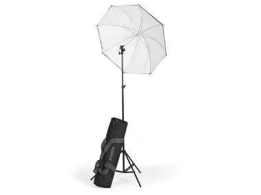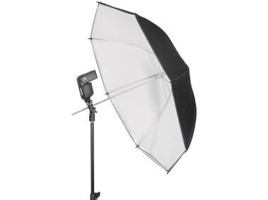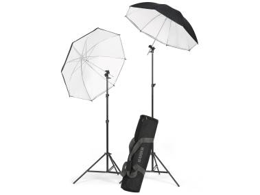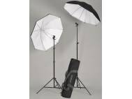 2 combined reflected/transmitted-light umbrellas, Ø 90 cm, with white inside fabric cover, and removable outside black cover.