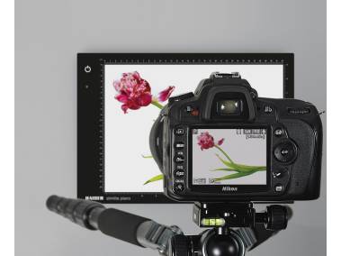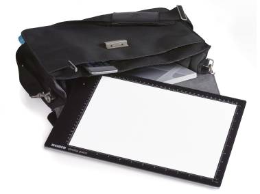 Super flat and dimmable daylight light box with built-in rechargeable battery.